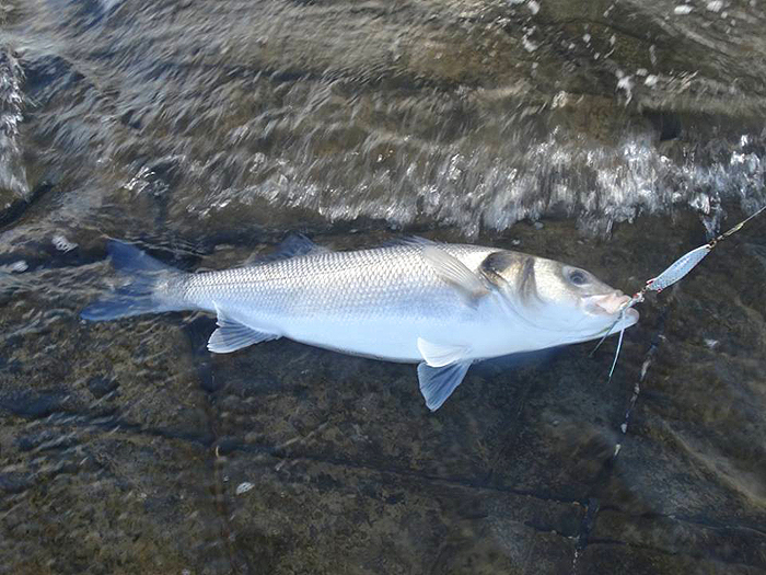 Back home the fishing this year was (as always) mixed. The bass fishing was poor overall. Despite persistently unsatisfactory conditions for my free-lining tactics I had a few goes and although I had one or two reasonable fish the best one (by far) got away after a long battle. At least I got a look at it before the hook came out and it was certainly well into double figures – I’m still bitter (can you tell?). We had few occasions when it was calm enough and safe enough to fish for mackerel, scad, pollack and schoolies from the rocks or to livebait for bass. For some reason the, usually abundant, small pollack, which are generally ‘bankers’ from these spots, were almost absent although a few decent scad compensated a bit.