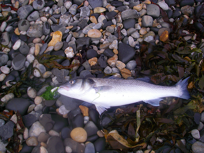 I've been having a bit of a thin time with the fishing recently. Since the salmon I had on the fly it's been pretty quiet (I guess I shouldn't complain). Some of my pals have had a few bass, mostly small, on lures and as always there are reports of the odd big one from different places. Anyway, on the rare occasions when conditions were suitable I've tried to stick to my plan of freelining big deadbaits for the bass. So far I haven't had a bite but last week something happened which gave me a bit of encouragement.