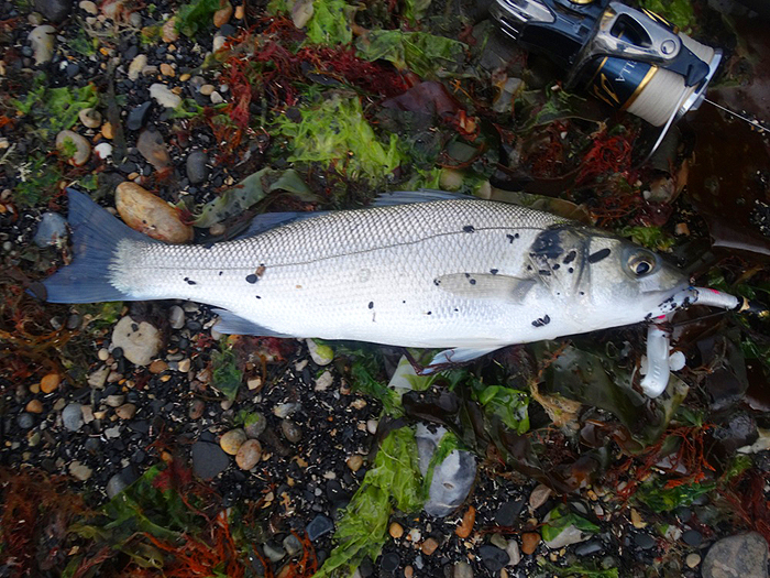 As I yomped along the rocks at 06:45 I saw two tailing bass, not big ones but worth a chuck so I tried to get them to take a Slug-Gill/Evo Stix but I couldn't tempt them.