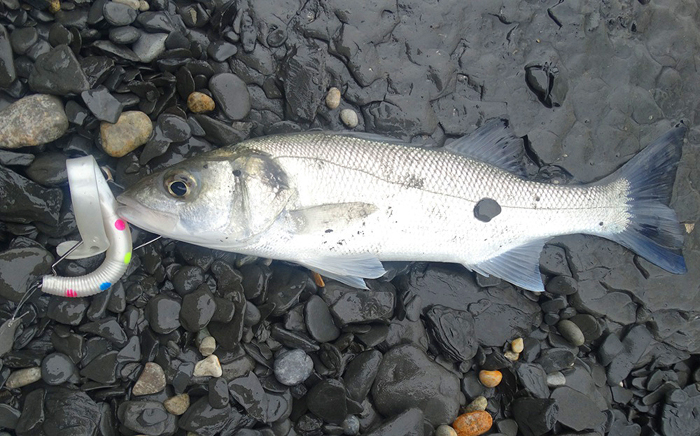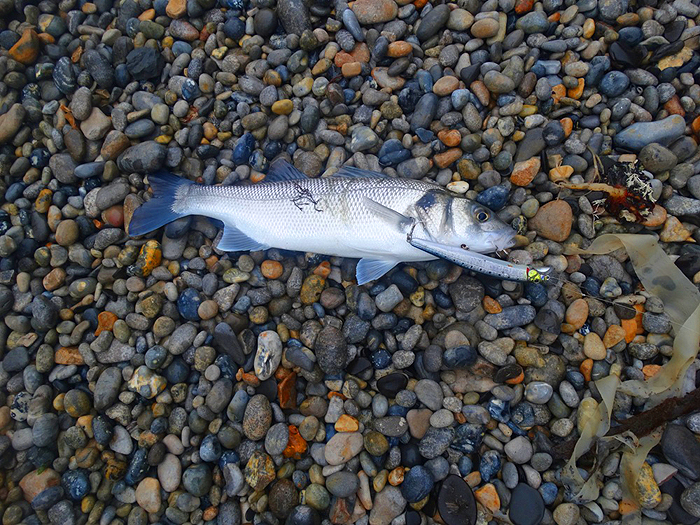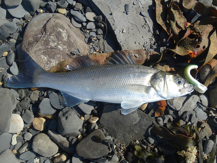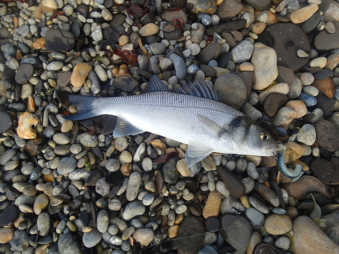 Then the rain started and it was so humid that I was half expecting thunder. I had one fish within the first hour then wandered along another mile or so. It was a big tide so there wasn’t much beach but I had three more fish from a stretch of shingle and one from the boulders on my way back. I finished off with one final bass half-an-hour before I packed in at 11:30. All the fish were schoolies of between one and two pounds except for the best one which weighed about three. The first five fish all took on a flooding tide.