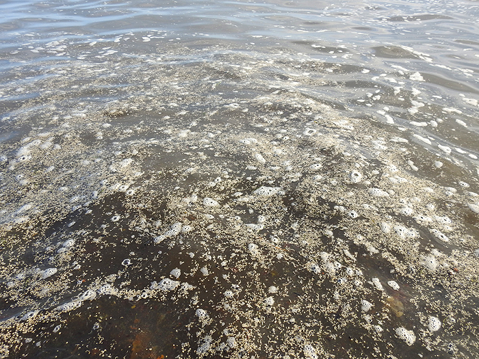 It was a sunny evening with an offshore wind so we were pretty hot and sweaty by the time we arrived at our selected spot. There was a decent midden of rotting weed but no sign of any fish so we walked another half-mile or so to see if there were any more likely places. there weren't, so we had a few casts with the lures and neither of us had a bite. The only sign of fish was three big mullet which swam past me heading in the direction that we had come from. Taking the mullet as a hint we decided to tramp all the way back to the big weed midden. We were almost there when Bill pointed out some bass swirling at maggots in the small breaking waves only a foot or two out from the edge. he stopped to try and catch one while I pressed on back to the prospective 'hot spot'.