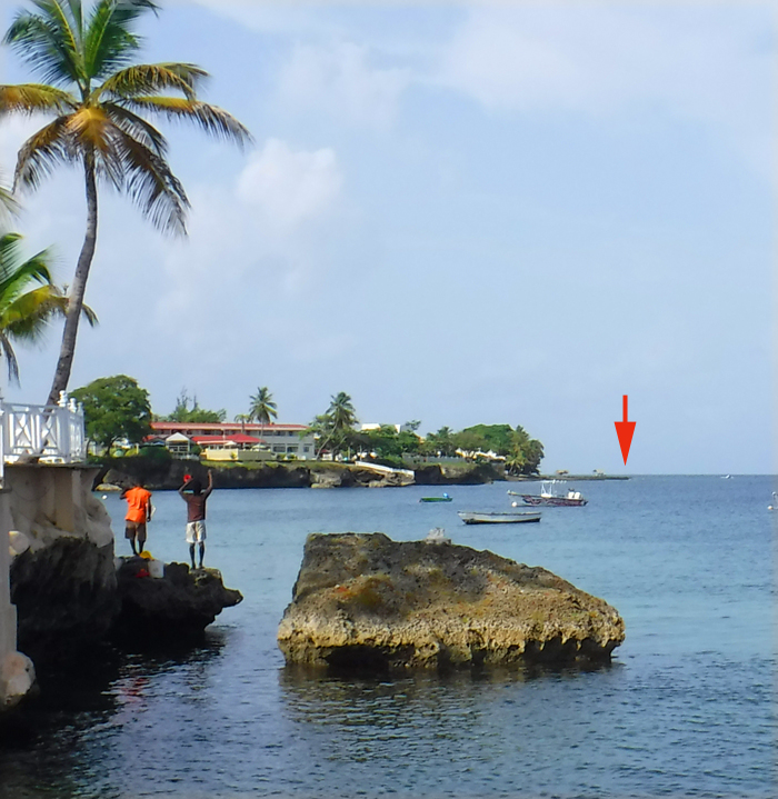 A view from Coco Reef hotel. The arrow shows the jetty where I landed the tarpon.