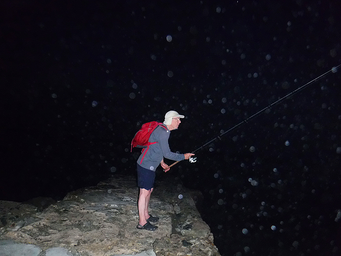 Having lost the smaller plug; for my next early session I switched to a black and silver Maria Chase SW. Having lost a fish I’d completely replaced the fairly old braid with new 30lb Whiplash and retied the traces. Even with my larger lure the jacks were still too far out. At about 05:40 I had a really solid take at distance. The culprit immediately launched itself into the air with gaping gills and flashing flanks – a good tarpon. Then it ran, jumped and ran again. Several times it repeated the procedure and with each jump I had visions of the lure coming free – but it didn’t. The worst moment was when a low flying pelican clipped the line as it glided over. Fortunately it didn't tangle up.