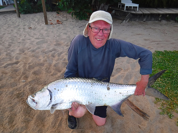 The tarpon was in mint condition, deep in the body and very thick across its back. I measured it at 63 inches to the fork of the tail, which is well over sixty pounds on the graph. Quite a fish on my bass gear and landed completely on my own. I was shattered. The chap who helped me to lift it asked if he could have it to eat and later told me that it had been barbecued that evening and fed an army of people. Excellent fishing.