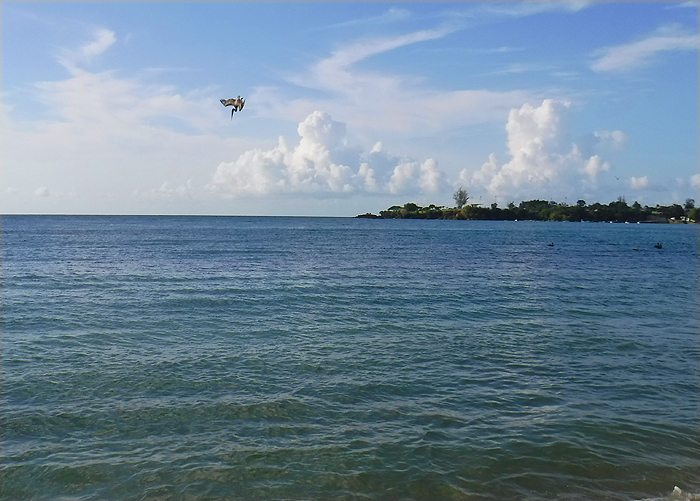 It was calmer the next morning and I clipped on a 10cm Coixedda 100 plug for my one-hour dawn session. Fishing from the longest jetty at Sandy Point and dodging the diving pelicans on every cast I hit a fish which rocketed away in typical jack fashion, ripping off line against a tight clutch. After a heart stopping struggle (there are lots of line-threatening rocks and sea fans) I was able to slide a 12 pound crevalle jack onto the strip of sand still exposed, unhook it, take a picture and release it. A nice fish at last – good start! Locals who came down later caught nothing. The following morning I tried again but lost the plug when a larger jack cut me off on the coral. That afternoon day we visited Grange beach and (typically) saw nothing but hound fish and went on to Turtle beach where there were masses of birds and bait fish but no sign of predators.