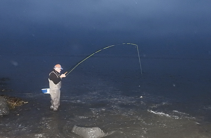 Nigel into a fish in darkness on the second evening.
