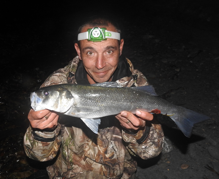 The following evening I wasn't able to fish, so Bill and Nigel went down alone. The conditions were apparently perfect with lots of fish again feeding on the surface. This time the bass were there in force and Bill's soft plastic snared him nine fish including a few three pound plus ones. Nigel, again fishing a fly had three bass, including one of four-and-a-half pounds which took a maggot fly and once more he had a nice mullet. A fantastic couple of hour's sport. Pity I couldn't make it.