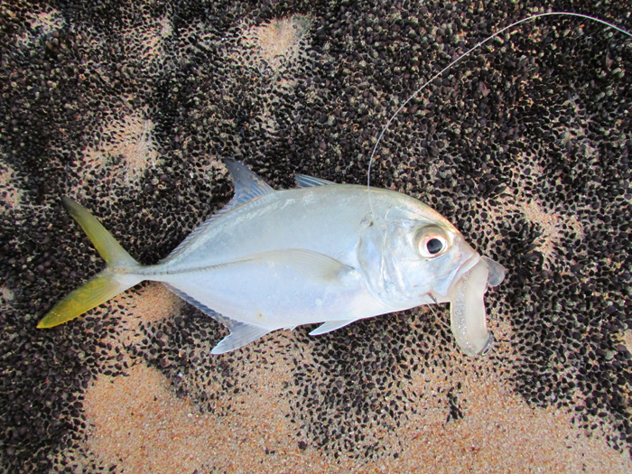 I’m afraid my fishing year was a bit of an anti-clímax after you left. After our clutch of big snook in January the fishing tailed off considerably in the wet season, and has only recently started to pick up again. The snook seem to move in and out of the area so that the fishing can be great on one set of tides (I had a 6lb and 13lb fish on consecutive sessions) and terrible on the next set. Interestingly, I have caught them in really rough conditions where I probably wouldn’t have bothered fishing a couple of years ago. I recently caught a couple of small horse-eye jacks and a monster leather-jacket (about 4lb) at the same beach, suggesting that I could catch a lot more fish if I was prepared to scale down my gear (which I am not!).
