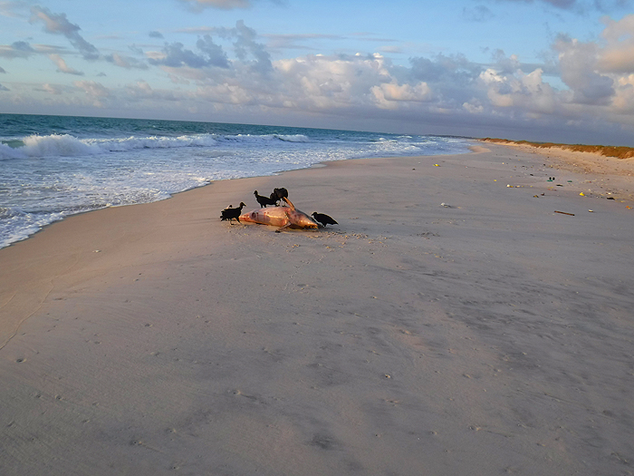 While we were in Brazil we had several mini-holidays in different places and explored the fishing on a number of beaches - mostly without result. We saw baby turtles being released and a dead dolphin washed ashore and being devoured by the ubiquitous vultures. There were lots of interesting plants and birds and we even managed to obtain the first record of a white woodpecker ever seen in the state of Alagoas. However - Sod's law made us hope that the best of the fishing might be at the end of the holiday. Richard was booked to examine a Ph.D. thesis in Recife so we decided to spend our last three days at a resort nearer to the University where he would be working. We hired a seven seater car, to cram the family in, and drove north for about four hours through endless huge fields of sugar cane and patches of coastal forest. The hotel we stayed in was on the beach near a little town called Porto do Galinhas and it fronted the usual long sandy surf beaten strand.