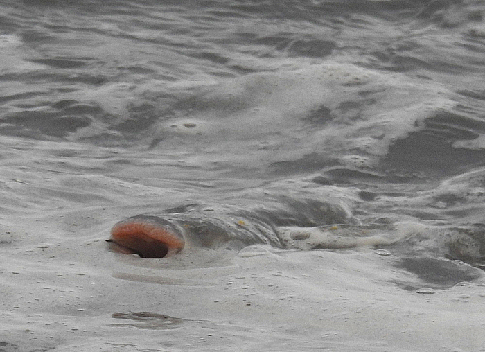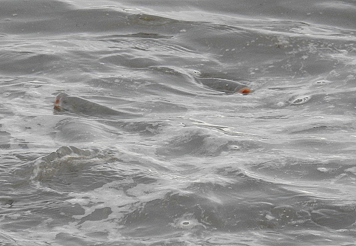 Bill Fagg had an interesting session near Chapman's Pool and he did manage a few modest bass on his lures. However, the most interesting pictures he sent me were of feeding thicklips. Now I've written quite a lot about catching mullet on 'dry' maggot flies over the years and the method can be very productive. Bass also take maggots 'off the top' but they do it in a completely different manner, so one of the critical things that you need to know, if you are to succeed, is how to tell the difference between the appearance of the two species when they are feeding in this way. Perhaps the most obvious distinction is that mullet tend to skim the surface film in a rather leisurely fashion with their eyes and the tops of their heads exposed. In contrast bass usually dart up and grab a mouthful of floating food with a splashy rise or a sort of mini porpoise roll. Sometimes the different behaviours are less obvious and in this case it helps if you know exactly what to look for. When I'm asked by anyone new to this type of fishing I always say that the head of a feeding bass looks as though it has been punched and has a black eye while the lips of feeding mullet are quite chubby and pink or red in colour. When you land a mullet the lips are pale grey or whitish so I assume that they become suffused with blood in some way when the fish are surface skimming. Why does it matter? Well maggot feeding bass can usually be tempted with a fry fly, a small Delta eel or even by spinning with a popper or a sub-surface lure, while mullet are most susceptible to a maggot-baited, poly-fly in the surface film.