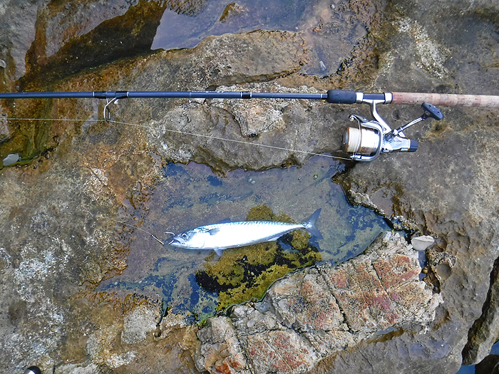 Last week I went for an early morning session at the coast. When I arrived in the car park my pals Rob and his dad Mike were already there and tackling up. We walked down to the sea together and spaced ourselves out along the rocky ledges to fish. We started by fly fishing and spinning but it was dark and for a while there was nothing doing. Eventually as the sky lightened we started getting a few knocks then Rob had a couple of mackerel and a pollack. At this point neither Mike nor I had caught anything. However, Rob gave me his second mackerel, which was lightly hooked, as a live bait. I progged the fish, which was a good size, on my 8/0 circle hook and set it swimming. Meanwhile my pals continued to spin with wedges or heavy spoons. To cut a long story short my livebait was untouched after a good half-hour of swimming and it was still going strong when I packed in. The others caught several more mackerel and pollack before the sun came up but, in truth, the fishing was slow. Hopefully it will improve as Autumn comes.