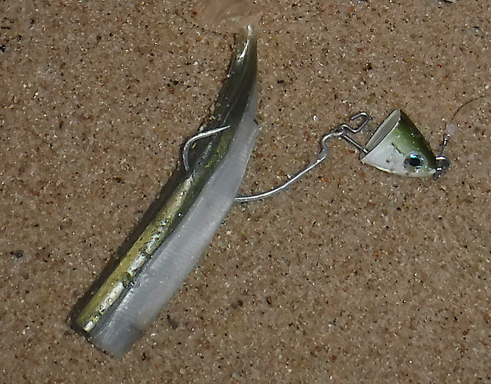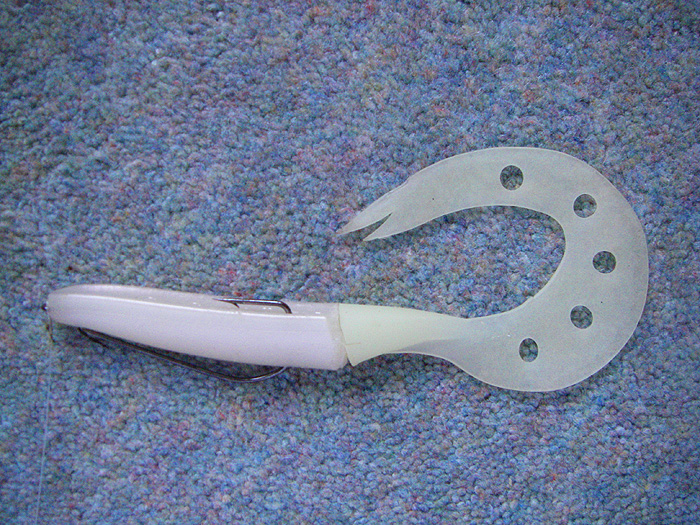 A homemade, weedless, hybrid Slandra - pretty good for bass and wrasse.