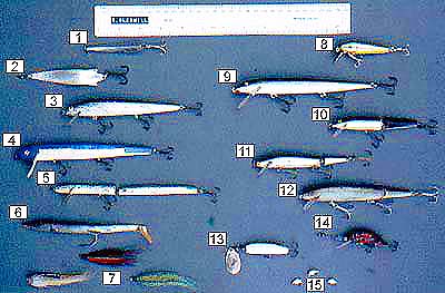 3: ABU Killer (one of our first floating plugs. Bass up to 11 pounds were taken on these lures)