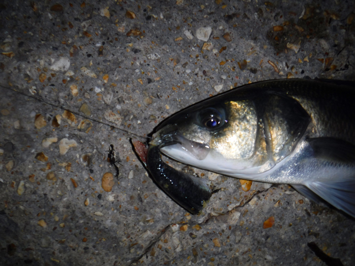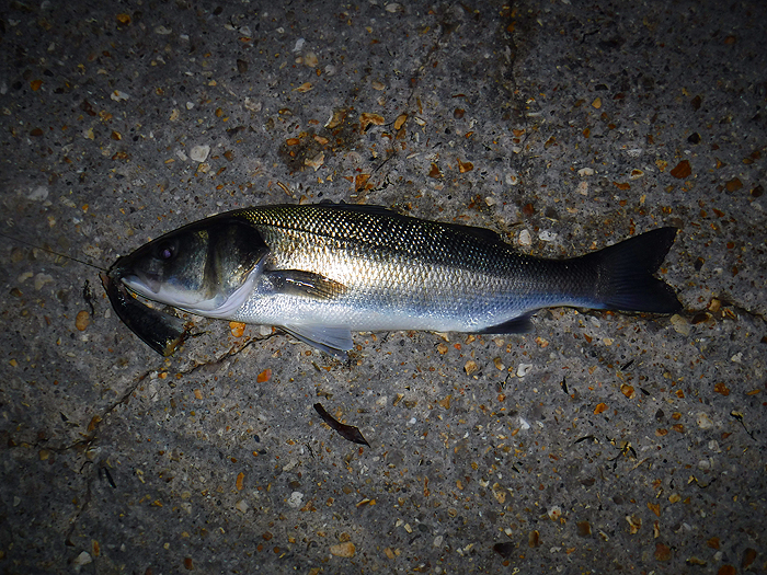 Out went the bait again and once more I waited. For a third time I felt the tell tale twitch and the line started to pour from the reel as a bass headed off to my right. I waited until it had gone quite a distance before releasing a metre of loose line while I closed the bale arm. This time there was no mistake as the rod bent and the clutch of my Shimano buzzed. Success! I played the bass back until I could slide it ashore. I took a picture, unhooked the fish (the bait was still on the hook), weighed it (6.25lb) and slid it back into the sea. Time to go home so I slung the piece of sardine in as a freebie for any bass that might still be there.