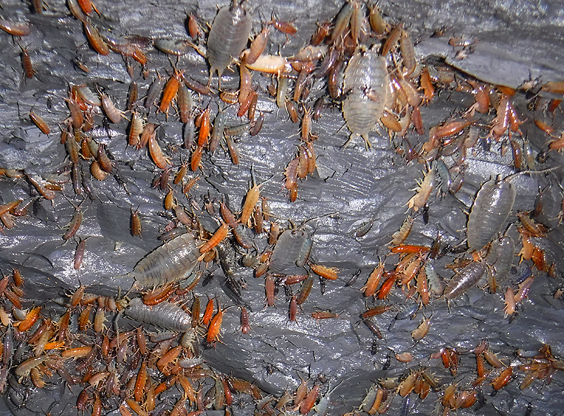I went with Bill on a fairly rough day and neither of us did any good. It was round about high water and the waves were pounding the beach. When this happens the beach hoppers (Talitrus) 'take to the hills' and in order to escape being washed into the sea and presumably eaten by bass, mullet, etc. they migrate up the shore and even climb the cliffs to safety. There were so many that I thought it was worth a couple of pictures. Anyway, it wasn't until I looked at the pictures on the computer that I noticed the presence of large slaters (Ligia) among the scurrying hoppers. These huge 'woodlice' make decent baits when suspended under a float and this would have been a good opportunity to grab a bagful. As a matter of interest I've never found either of these crustaceans in the guts of bass or mullet although I'm sure that they MUST be eaten given the chance.