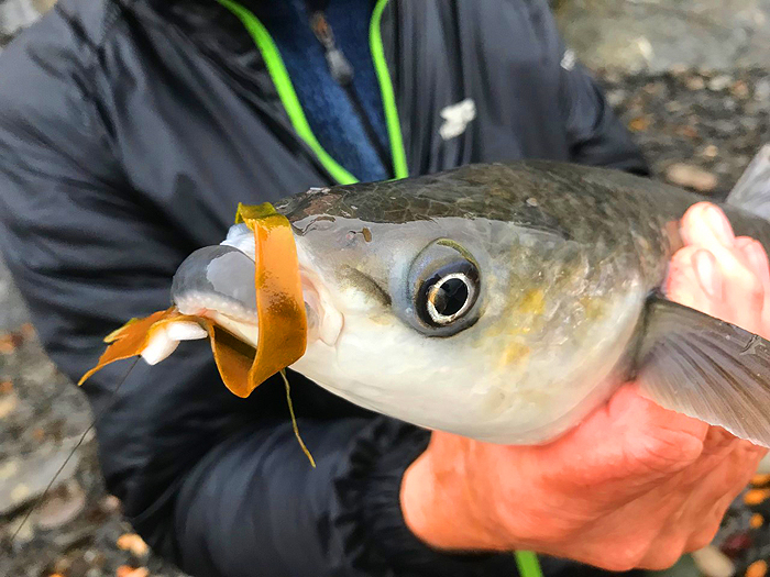Nice plump fish. In the absence of windscreen wipers I tucked my glasses under the hood.