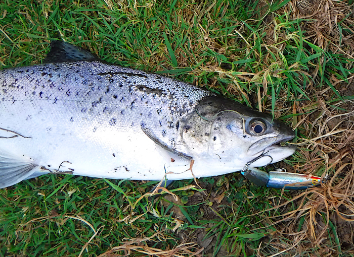 When I set up my website (a long time ago) I tried to avoid the traditional division of angling into coarse, game and sea; because to me they are all just 'angling'. I use more or less the same tackle rods, reels, lines, lures, hooks, etc., for most of my fishing, and often it just depends which rod I pick up when I leave the house. This week I had a classic example. On thursday evening I went to the river with the intention of spinning for seatrout. It was a calm, warm evening following a bright, sunny day - perhaps not ideal. Anyway, I clipped on a 7cm jointed, floating Rapala, generally a good bet for the local seatrout.