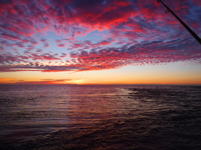 As I drove home I decided ti give it another go the following day. The tide would be an hour later so no need to get up quite as early. The session was almost an exact copy of the day before with the exception that the only fish I saw was a garfish jumping clear of the water. I had a couple of tentative plucks on the lure but they were almost certainly small gars - not good fishing. However, the bonus was a stunning sunrise and I stopped fishing just long enough to take a picture of the glowing clouds. At least I'd confirmed what I should have realised - there was nothing doing with the bass.