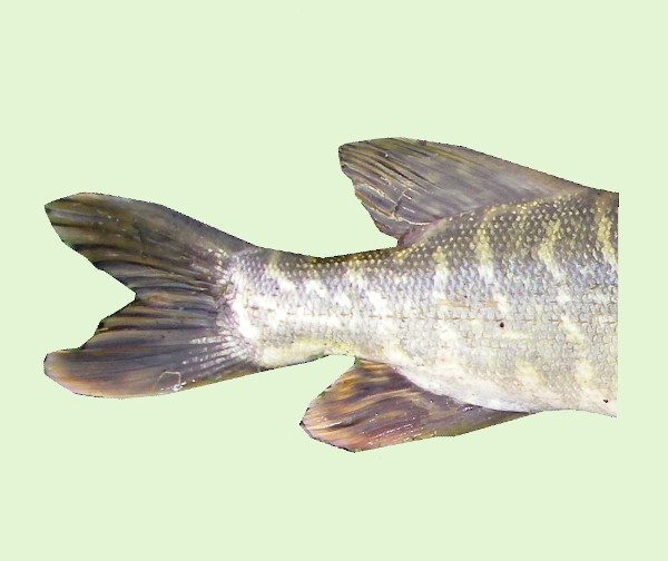 The tail end of a pike with a thick tail wrist and all the fins at the back for a quick start.
