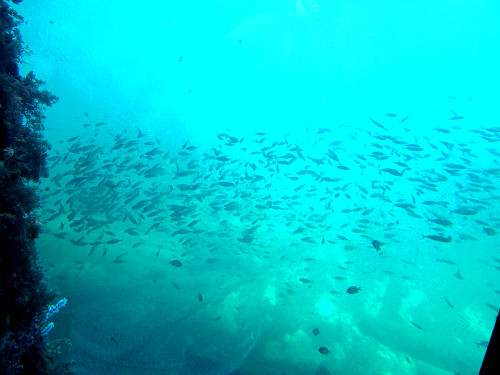 Bait-fish schooling for defence; behaviour which seems to work in both fresh- and salt-water.
