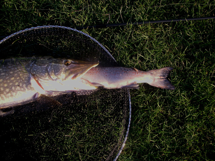 Large pike prefer to eat bigger fish than do their smaller relatives. This one went slightly over-the-top.