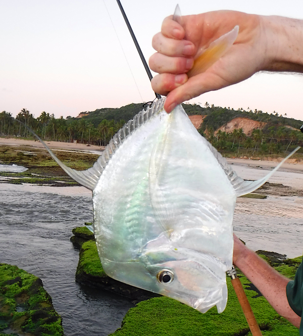 The awkward shape and brilliant silver sides of a lookdown may both reduce predation, but note the dark eyes.