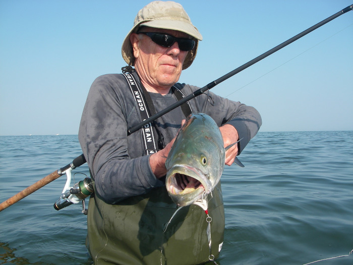 A powerful bluefish landed on the old Stradic.