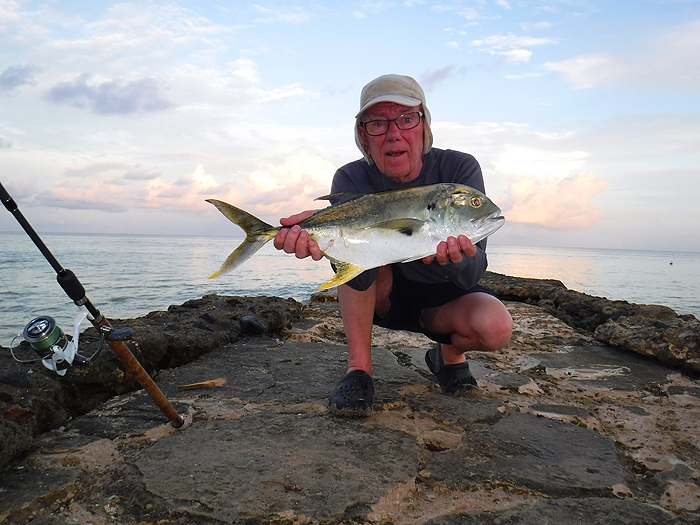 Same rod and reel playing a big jack at dusk.