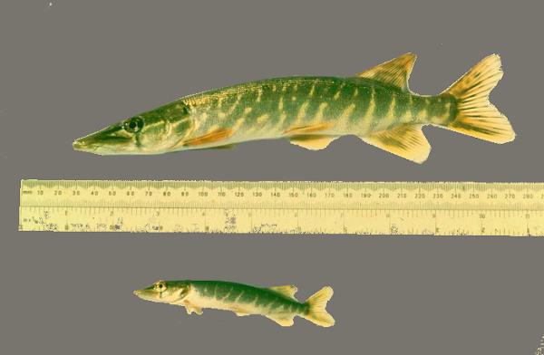 The water would be warming up quickly now, and the young pike growing rapidly. As they increased in size and became more like their parents in appearance, they would begin feeding on larvae and then fry of other fish which had hatched from eggs much later than themselves. In the River a few of the young pike would be eaten by trout and salmon parr, many more might fall prey to marauding perch, but the majority would be snapped up by the arrow-like lunges of their elder brothers and sisters. At one year old the survivors (now weighing over 4oz) would be feeding on the roach, dace, and minnows, which would be their food for the remainder of their lives.