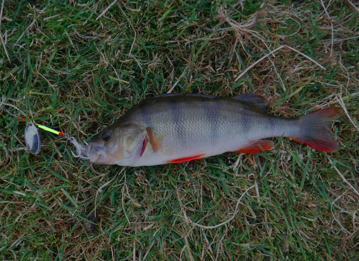 This plump perch, from one of my local rivers, took a jointed, shallow-diving, plug.