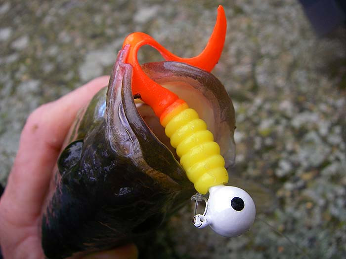 Anyway, in 2009 I decided to do something different to catch perch, just for a change. For years my pal Paul Froom had been catching good perch on soft-plastic 'grubs' and I'd been meaning to 'give them a go' but for some reason (angling inertia?) never got round to it. This time I was determined to give them a proper soaking. As it happened, that Christmas my grandson and ‘current number one fishing buddy’ Ben, had bought me a selection of lures which included several lead-heads and some plastic grubs. To make sure I didn't chicken out and tie on a plug, I only put the grubs in the box (and one little Rapala - just in case my confidence deserted me).