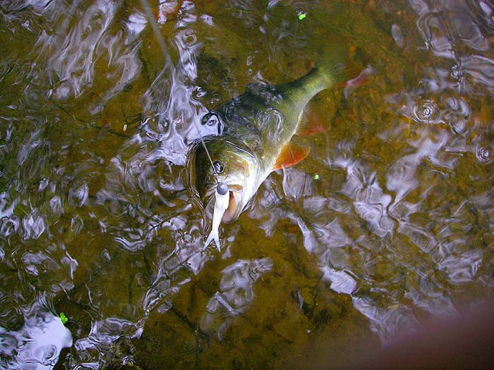 Perch are out and out, pack-hunting predators with the ability to ‘run down’ small fish. They will take plugs and spoons but, as already suggested, perhaps the most popular lure for them is a spinner of the Mepps type. Many anglers simply add a tassel to the hook to accommodate the ‘tail-nipping' activity of the chasing fish. I have caught a lot of these fish on plugs, including some decent sized specimens, but perhaps the most interesting tactic in recent years, has been the use of a jigged, lead-headed, soft plastic lure.