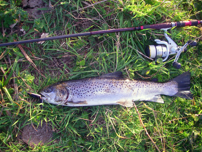 A poorly conditioned seatrout (but not as thin as the first one I caught from the Waren Burn).