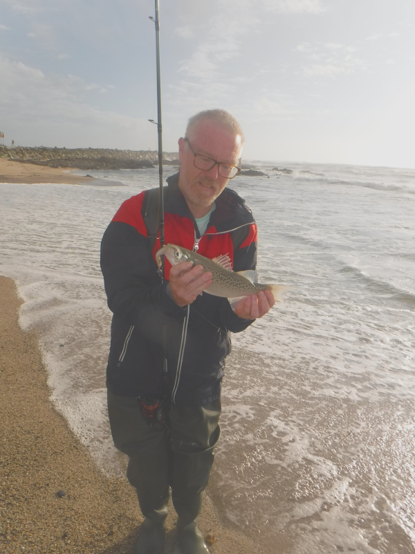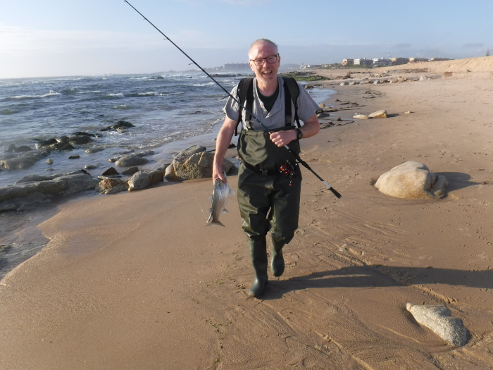 We are just back from a visit to our third son, Richard, and his family who are currently living near Porto, Portugal. While we were there Richard and I did a fair amount of fishing, mainly for bass, from the local beaches. Richard's work commitments and his children's school regime, limited our fishing to short early morning or evening sessions. The fishing was a bit disappointing, but we had a few fish and my son (as he usually does these days) outfished me almost two to one. Despite the general lack of fish and the small size of the bass, we had an enjoyable time and even managed to catch one or two spotted bass (Dicentrarchus punctatus), a new species for me.