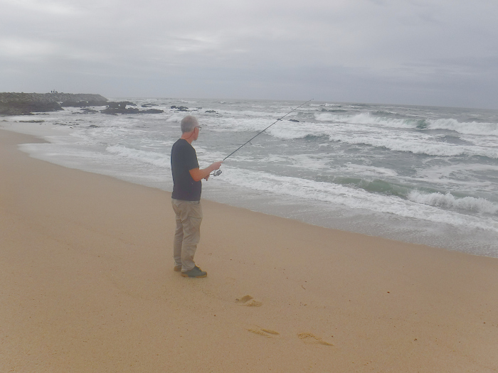Just to finish off I should say that a LOT of people fish in North Portugal. However, while we were there the number of people spinning was quite small compared to what I've seen on previous visits. The vast majority of shore and pier anglers fish with long (5m+) rods with fine tips. From the beaches and rocks they either float fish or leger/paternoster using small hooks baited with worm or bits of sardine or squid. We have rarely seen anyone catch anything and up to now nothing at all of any great size. Richard's few bass of 5 to 8lb, which he has caught by spinning, are by far the largest fish that we have seen. I found all of this difficult to understand in view of the past reputation of this coastline for large bass.