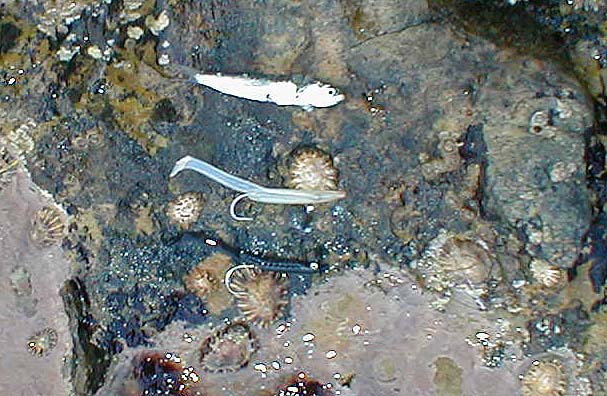 My gear is a 'trout' fly rod with a number seven weight forward floating line. On the end of the line is a length of 6lb nylon with a dropper tied part way along. Two 6cm flies are attached one black and one white and when I am catching fish I simply keep a count in my head of the number and species caught on each. Sometimes the action is almost too thick and fast to keep a true count but the numbers are about right. Of course, with two flies, it quite often happens that two fish are landed at once and it can be a bit tricky to know which fly was taken first so this distorts the picture somewhat.