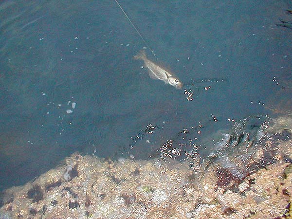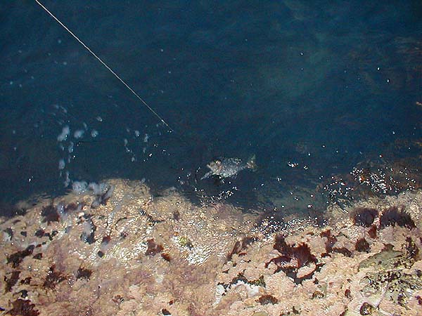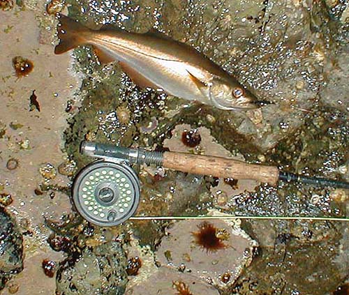 I think I mentioned that I have been trying black and white 'flies' (Redgills) in my saltwater fly fishing. The idea was not to catch lots of fish at once but to compare the effectiveness of the two contrasting colours for different species. The idea came to me when I realised that I could catch five species, on fly, from one spot in sufficient numbers to make the experiment worthwhile.